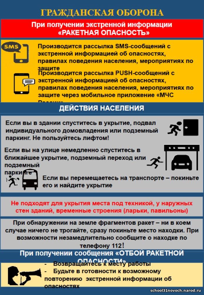 При получении сообщения «ОТБОЙ РАКЕТНОЙ ОПАСНОСТИ"